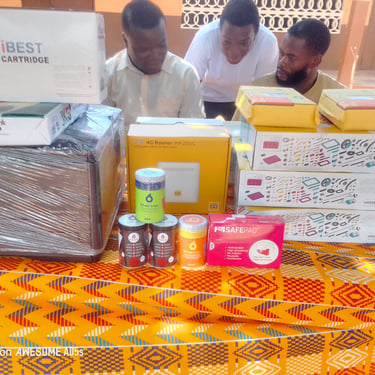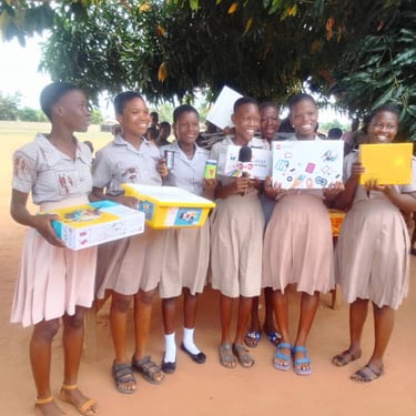 Donation of Menstrual BFree cups, SAFEPADs (re-useable pads), and Lego Coding/Robotics kits for SHECodes girls club at Dagbamete Basic School.